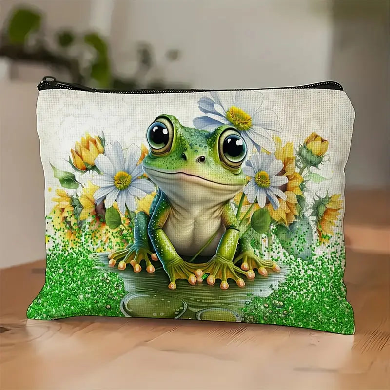 Vibrant Green Frog with Yellow & White Flowers Design,