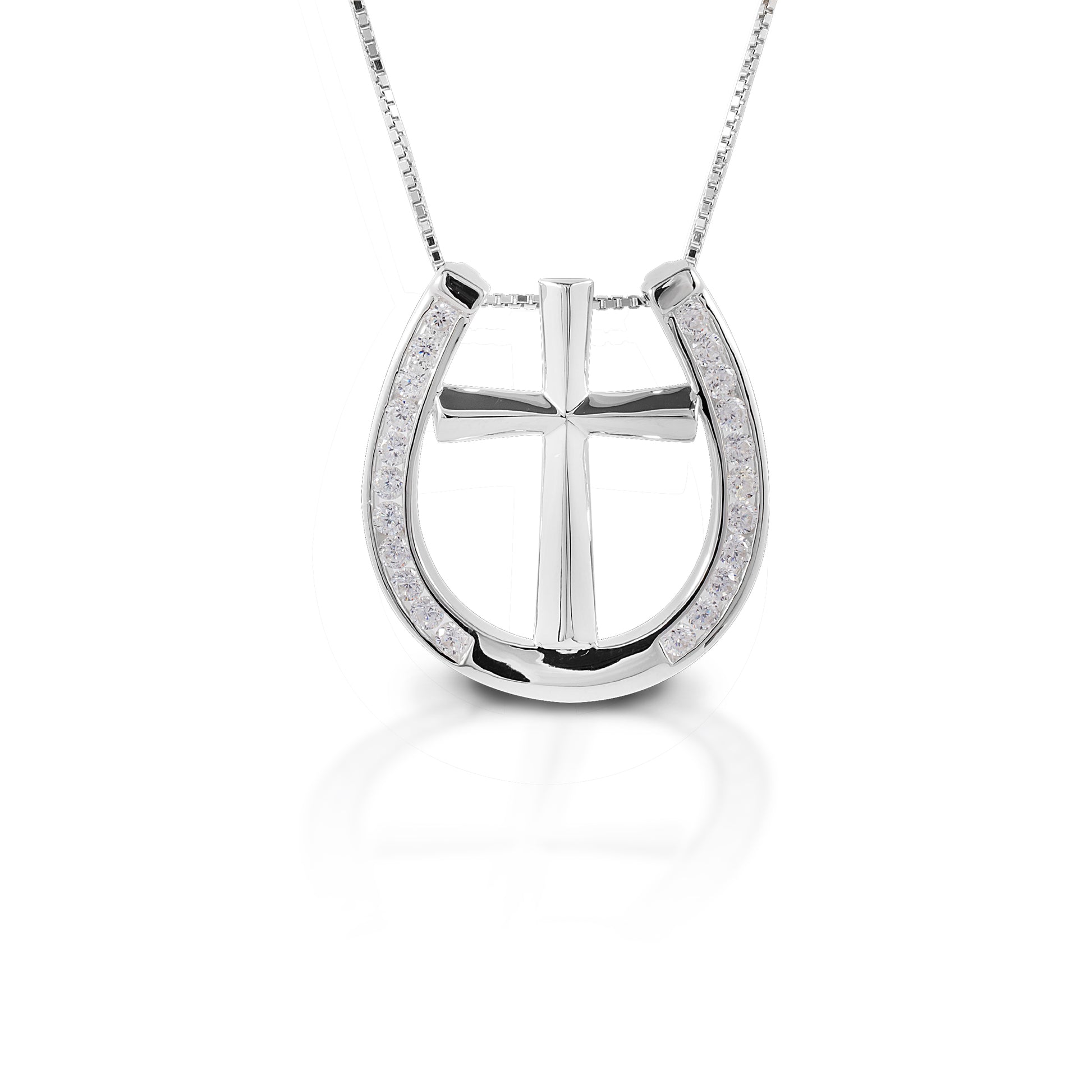 Faith, luck and a touch of sparkle with this Kelly Herd Cross and Horseshoe Pendant necklace. A gorgeous simple design of a lucky horseshoe enhanced with clear CZ's and a cross inside.