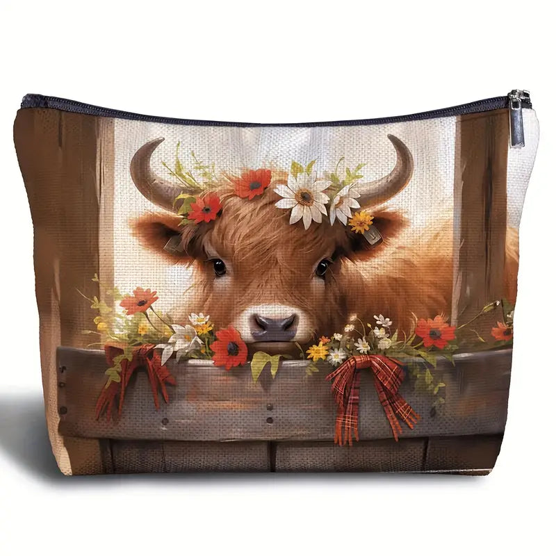 Highland Cow Makeup Bag Fall Design