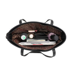 - Inside of the bag includes a zippered pocket and 2 open pockets