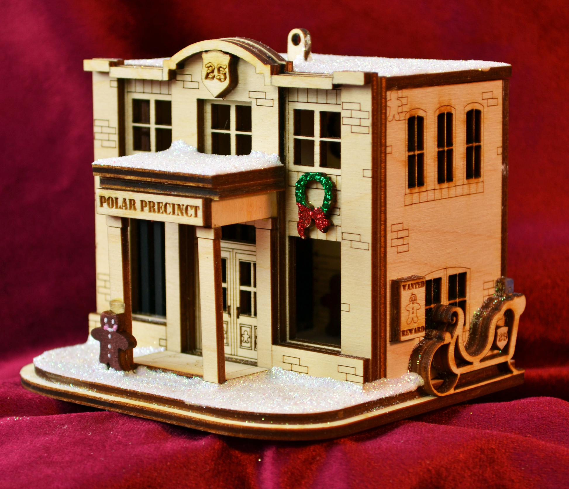 Handmade in the USA, this Ginger Cottage can be hung in your tree, and by inserting a light from your trees string of lights into the underside hole, will llight up and reveal hidden secrets located inside the Precinct.