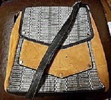 Genuine leather, upcycled hand patched Messenger/shoulder/cross body bag made of the freshest genuine leather scraps. Fold over flap with magnetic clasp, interior contains zippered pocket on rear on pocket wall with 1 slip pocket on front wall pocket. Zippered pocket on outside rear of bag.