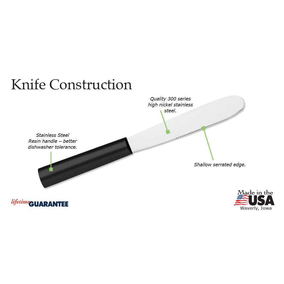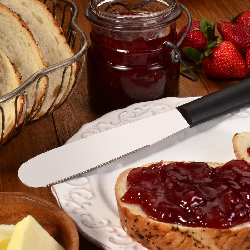 The go-to condiment knife! High quality construction, sturdy non-flexing face and serrated edge make this Super Spreader perfect for spreading jam, mayonnaise, peanut butter, cream cheese and much more.