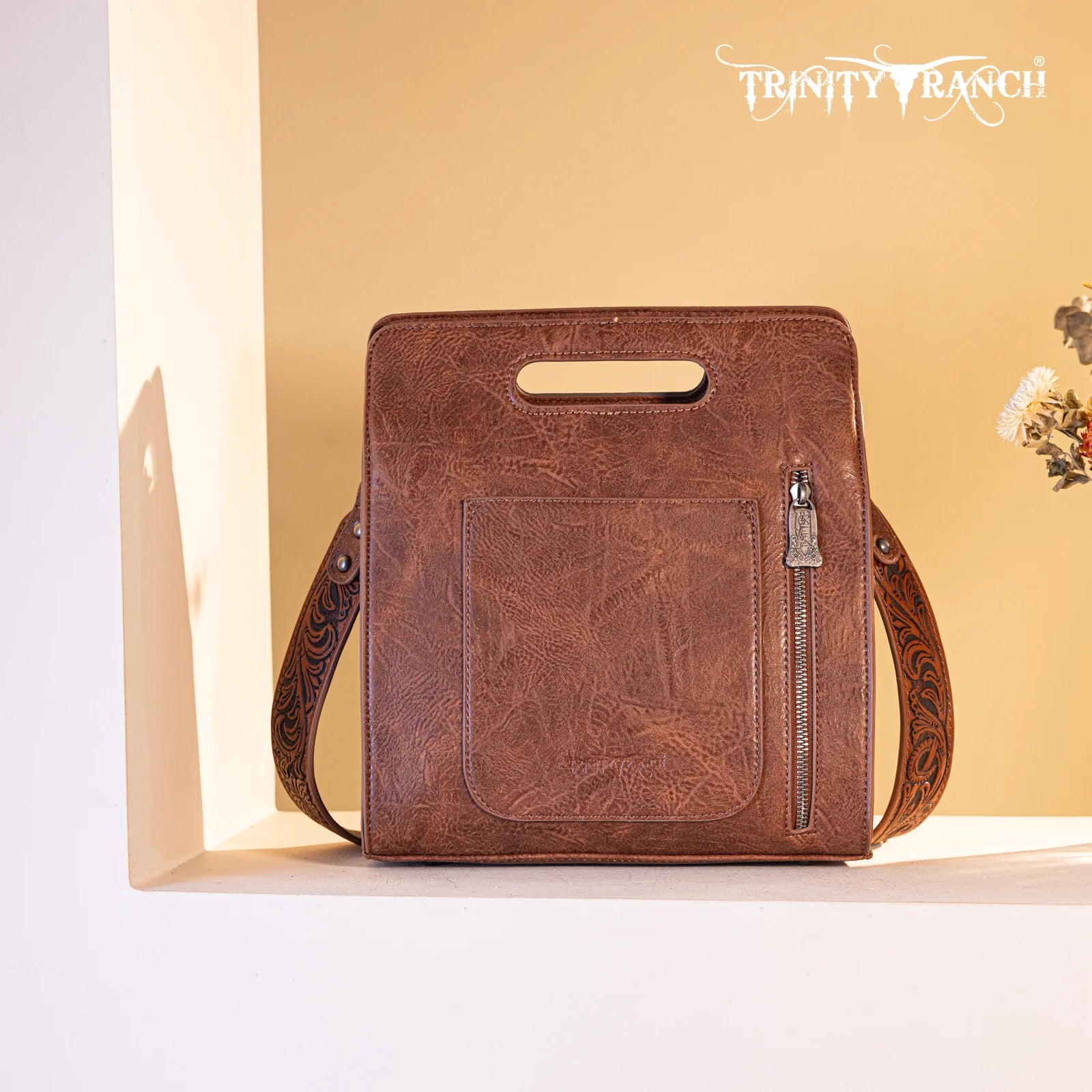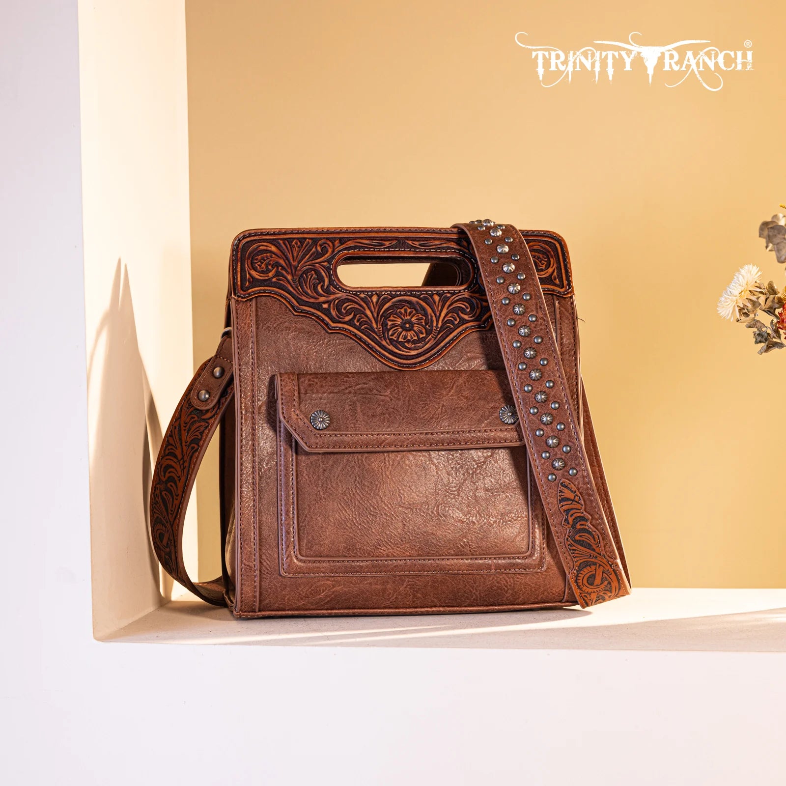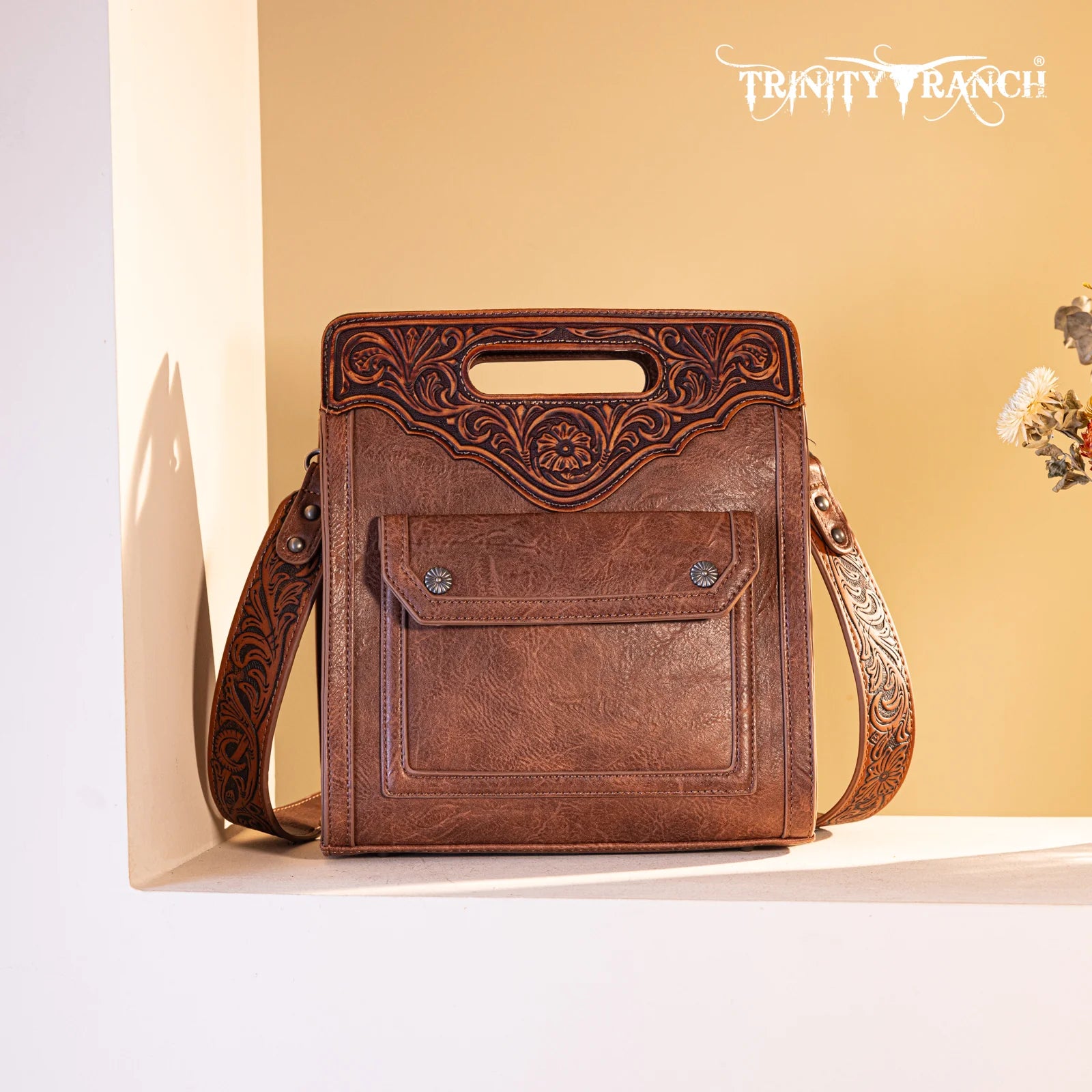 Trinity Ranch Floral Tooled Concealed Carry Crossbody Bag - Brown