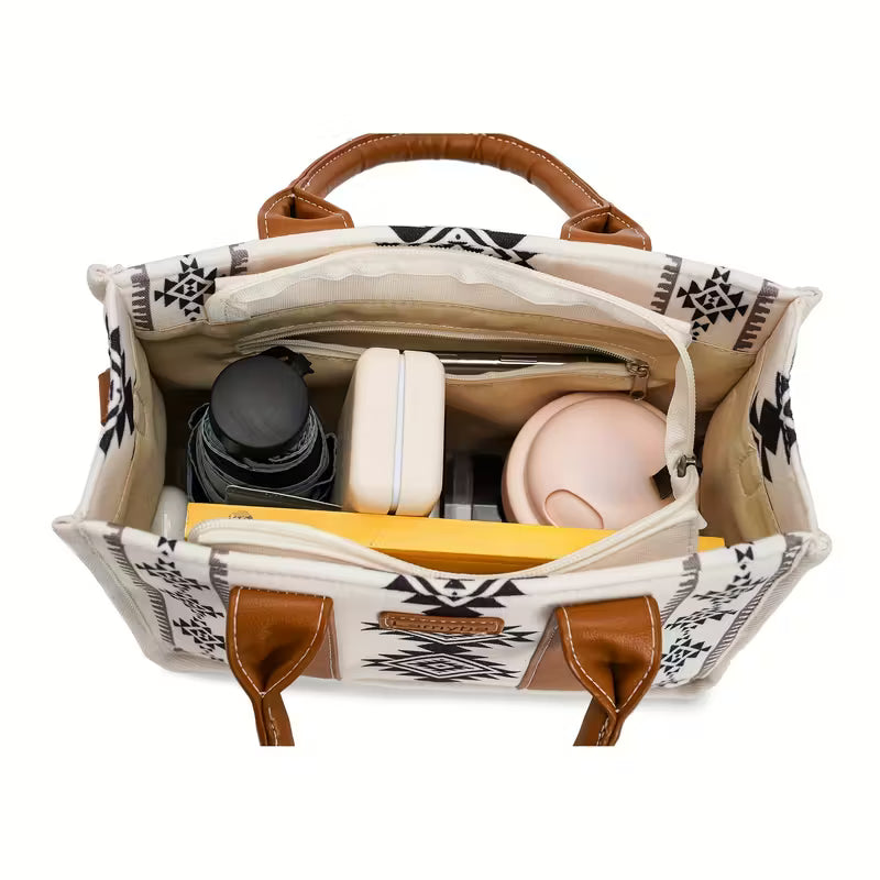 Small Western Aztec Canvas Tote Bag - can wear over shoulder or as a crossbody.